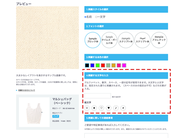 商品ご購入時に、商品に文字の刺繍をお入れする有料サービスです。 簡単3ステップで、あなただけのオリジナルを作れます!
