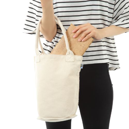 いっぱい入るバケツ型。持ち手にクッション入で肩掛けもラク。
